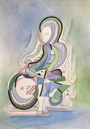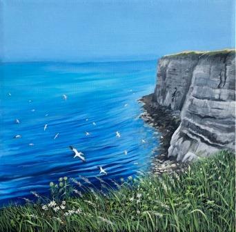 A painting in search of a title, inspired by a chilly day on the North Bay at Scarborough – so many blues in the sea and the sky! This painting and the two above were included in my exhibition in February 2024. (see my blog).